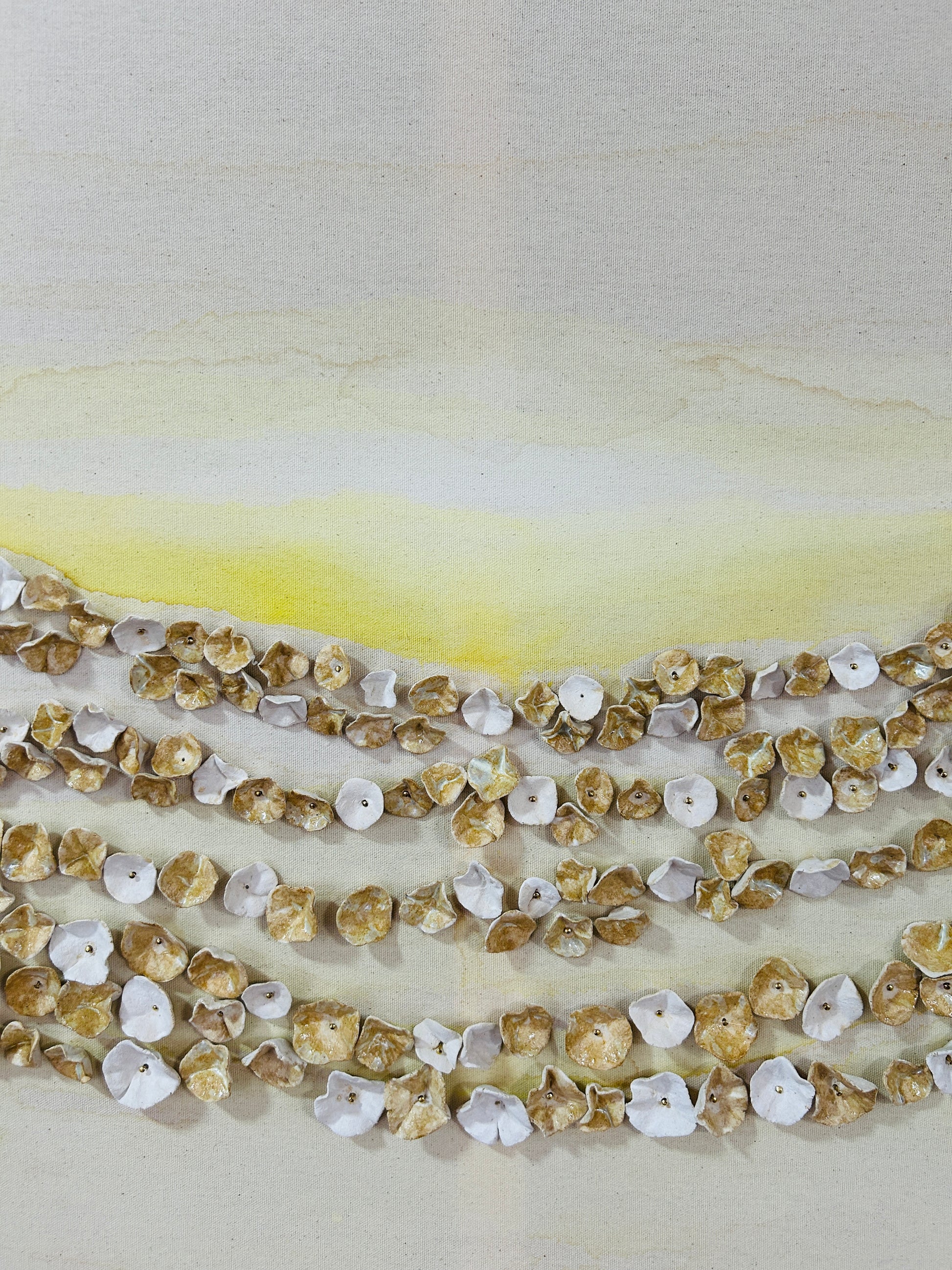 These series of paintings are a collaboration of Remle’s two collections, Lei Aloha Collection and Soulever Collection, combing both her ceramics to her paintings as an added layer, motion and organic lines.