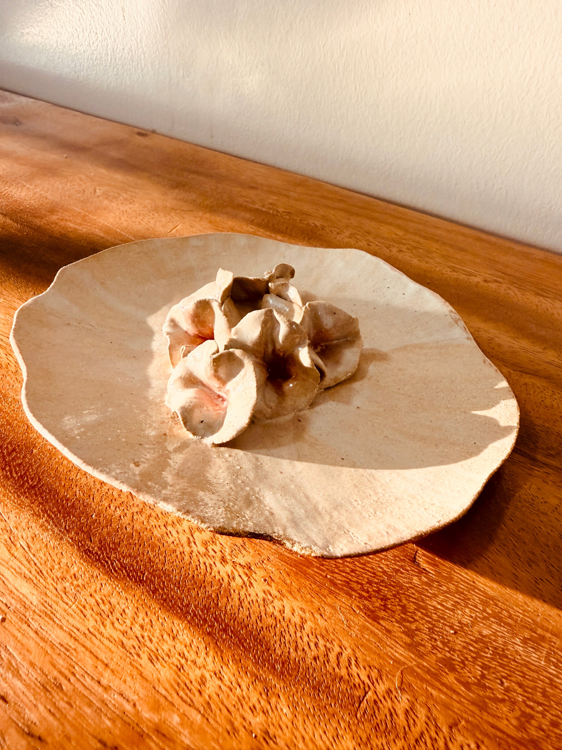 Each piece is uniquely hand built + hand glazed and fired.