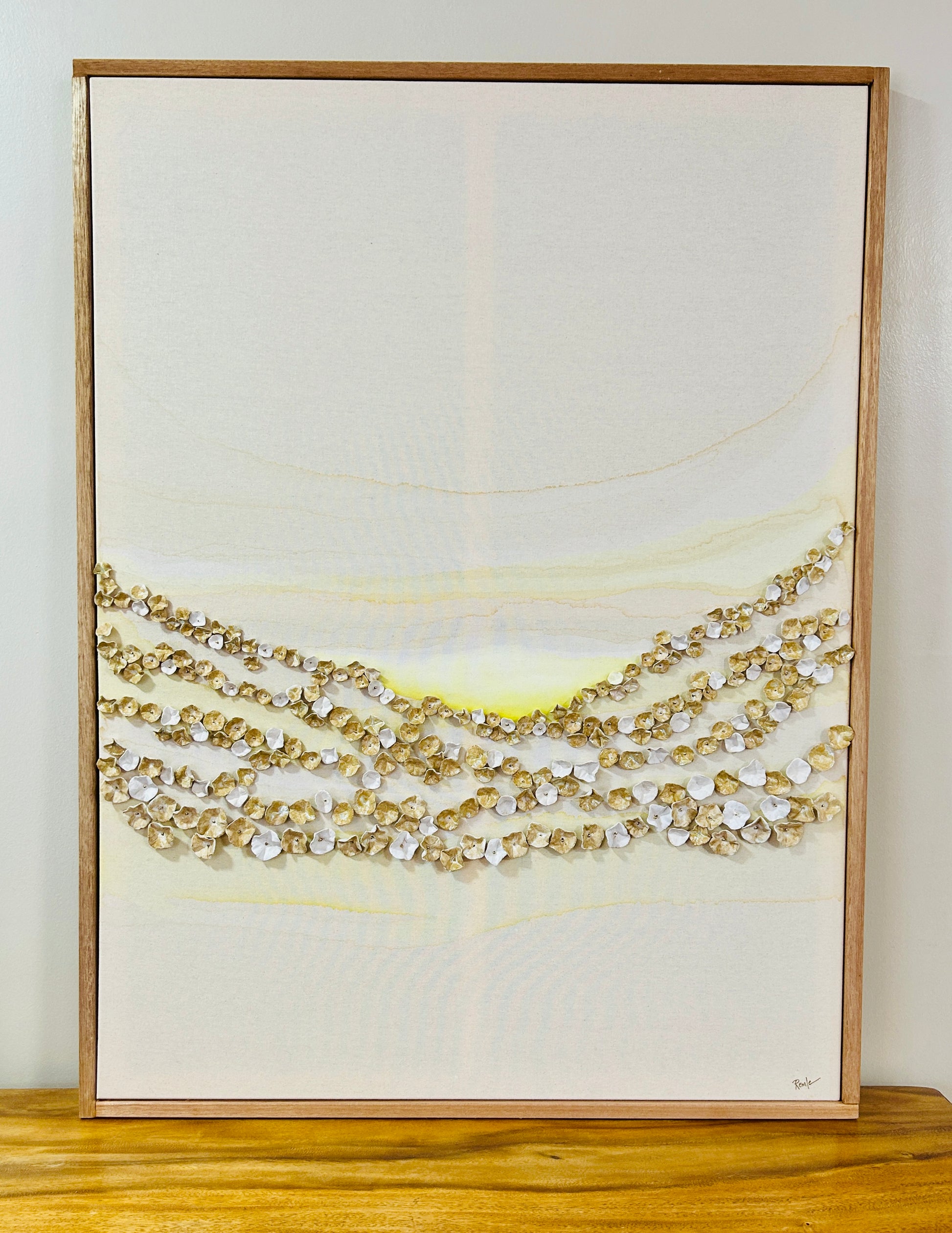 These series of paintings are a collaboration of Remle’s two collections, Lei Aloha Collection and Soulever Collection, combing both her ceramics to her paintings as an added layer, motion and organic lines.