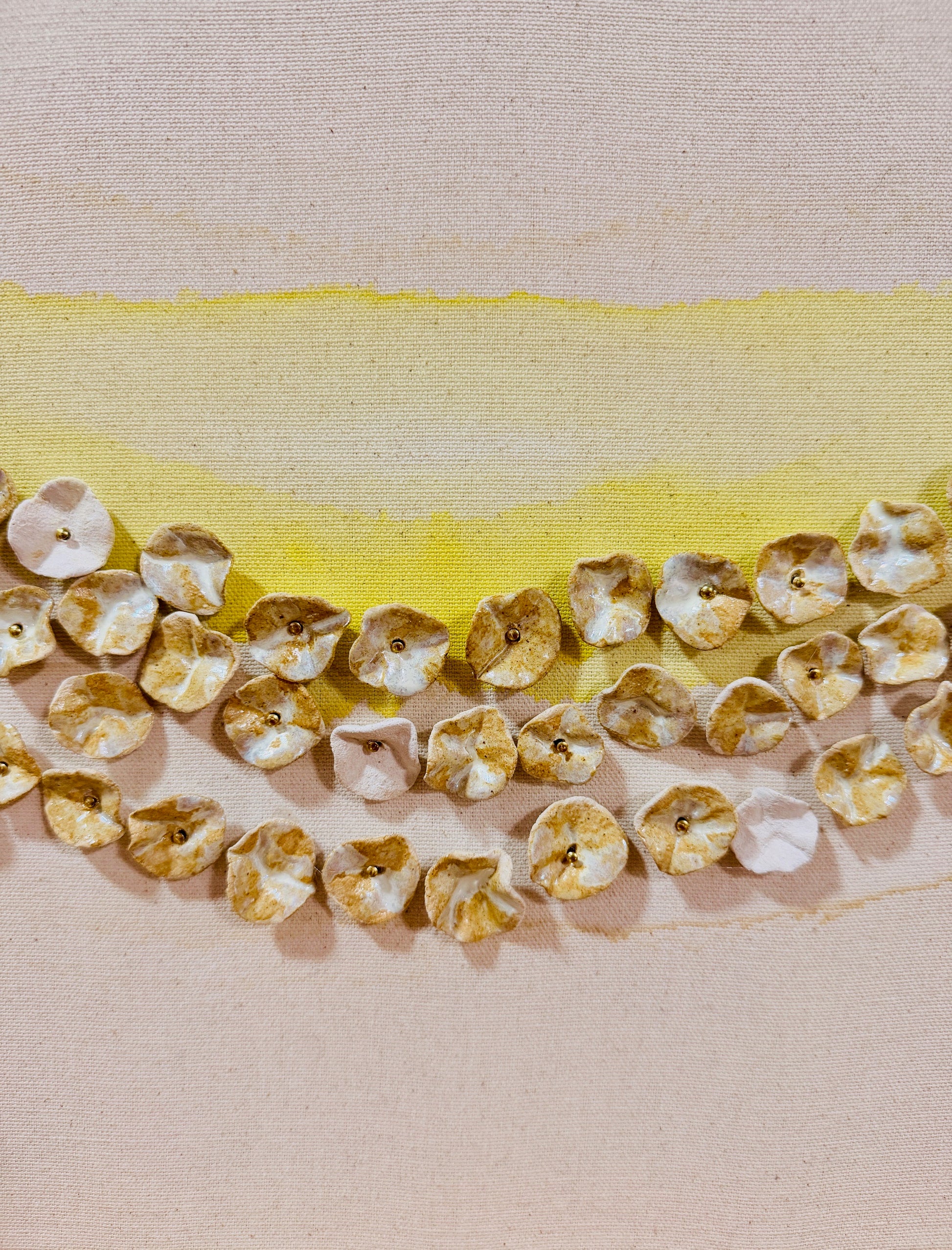 These series of paintings are a collaboration of Remle’s two collections, Lei Aloha Collection and Soulever Collection, combining both her ceramics to her paintings as an added layer, motion and organic lines.