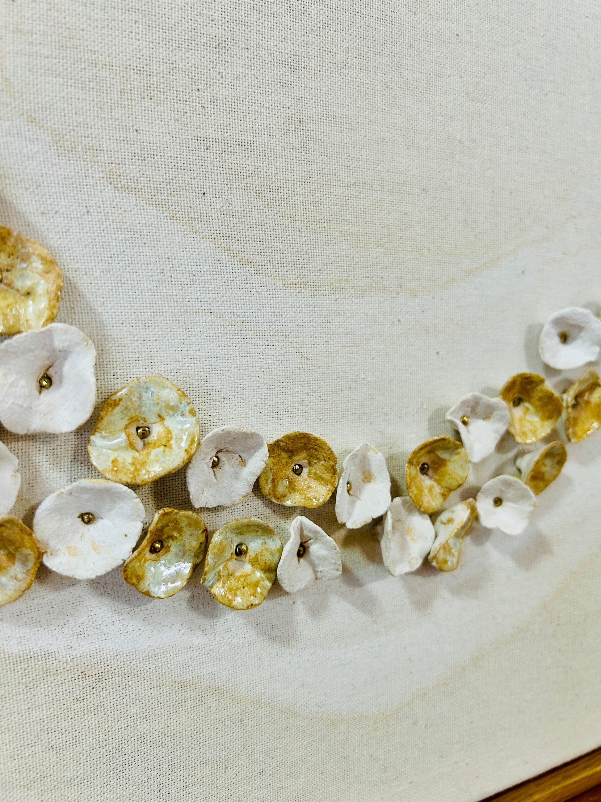 These series of paintings are a collaboration of Remle’s two collections, Lei Aloha Collection and Soulever Collection, combing both her ceramics to her paintings as an added layer, motion and organic lines.
